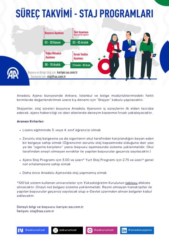 - Anadolu Ajansı Stajyer Başvuruları Başladı!