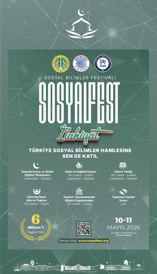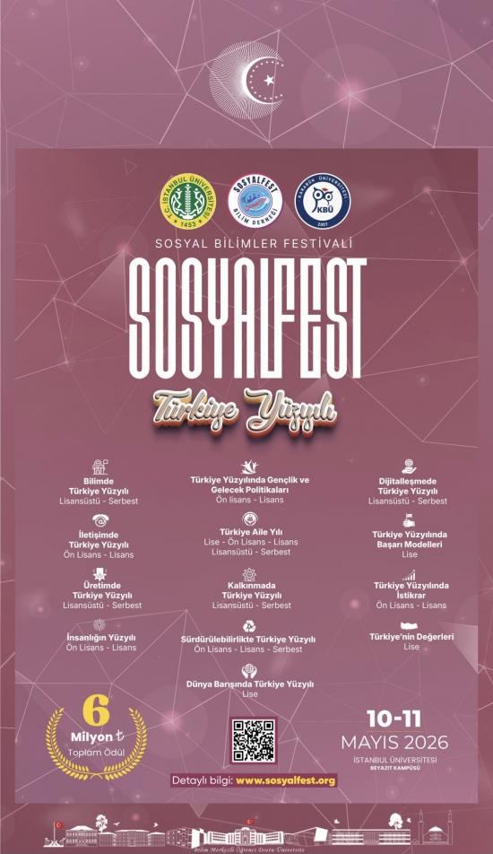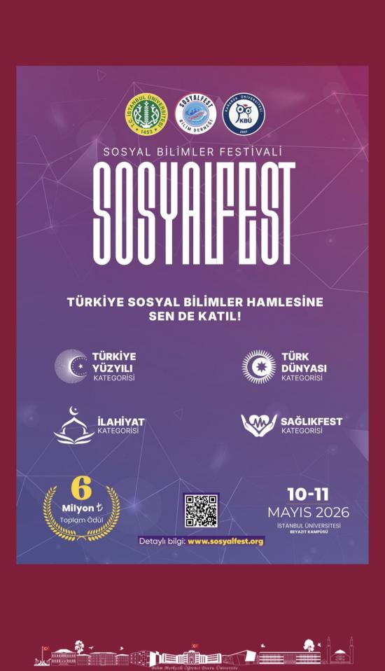 Türkiye Sosyal Bilimler Hamlesi vizyonuyla düzenlenen Sosyalfest, 10–11 Mayıs 2026 tarihlerinde İstanbul Üniversitesi Beyazıt Kampüsü’nde gerçekleştirilecek. Festival; sosyal bilimler alanında fikir üretmek, proje geliştirmek ve toplumsal sorunlara çözüm aramak isteyen herkesi bir araya getiriyor.